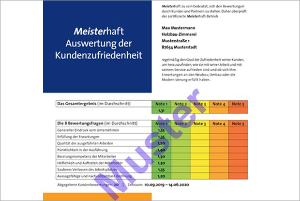 Ein ansprechender Internetauftritt und geschickte Suchmaschinenoptimierung reichen oft nicht aus, um erfolgreich zu sein. Für viele Bauinteressierte sind Kundenbewertungen ein Orientierungsfaktor. Gute Bewertungen können die Entscheidung für einen Betrieb erheblich beeinflussen! Im Zuge der Überarbeitung der Meisterhaft-Werbemittel hat der Verband auch den Meisterhaft-Fragebogen zur Kundenzufriedenheit komplett überarbeitet.